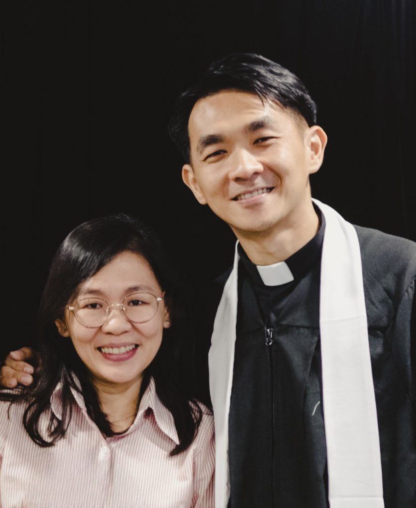 其妻玮欣师母虽非受聘同工,仍以配偶身份同心、忠心参与协助勇辉牧师的服事。